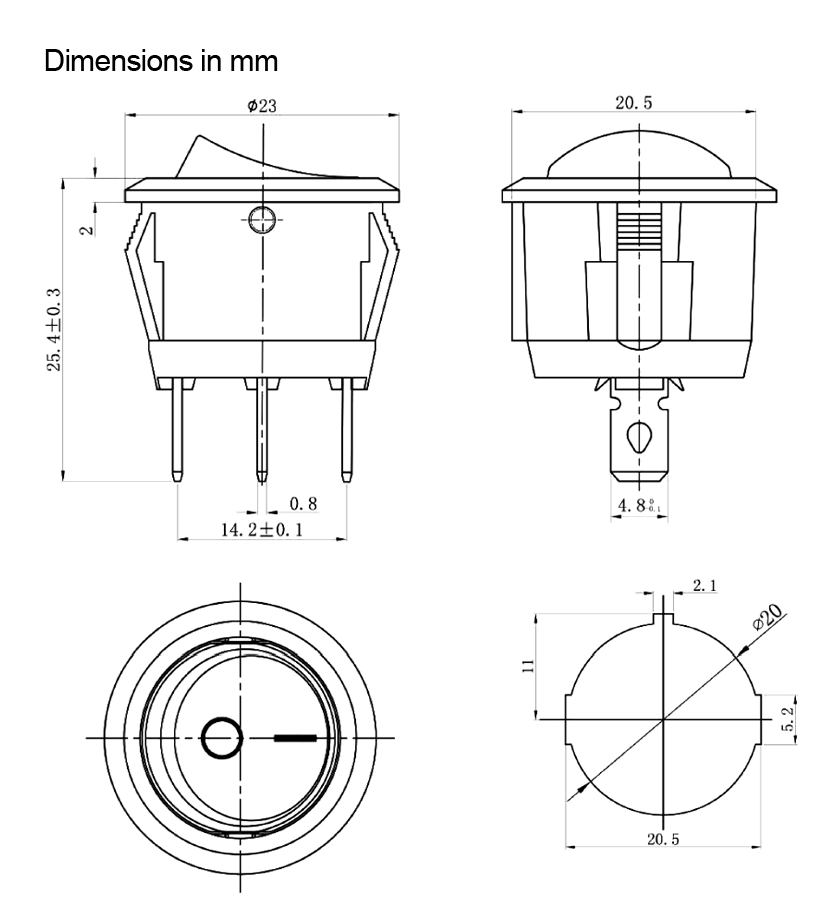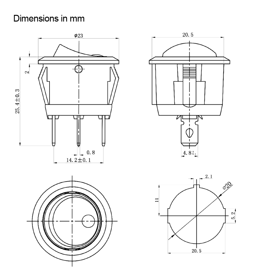 10A; 220 VDC; EIN-AUS; einzel; SPST; 3P; weiße Hintergrundbeleuchtung; Lebensdauer: 10000 Zyklen; Betriebstemperatur: -25°C+85°C