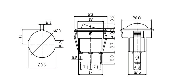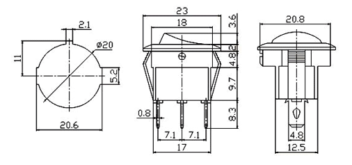 20A; 12 VDC; EIN-EIN; einzelner SPDT; 3P; Schwarz; Lebensdauer: 10000 Zyklen; Betriebstemperatur: -25°C+85°C
