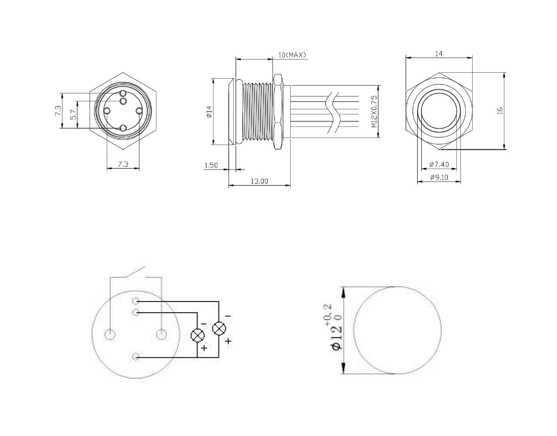 Wohnung N / A Vandalensicher 1NO1NC 12mm N/A Zum Löten IP65 N/A 1A/250VAC N / A N/A Wechseln N / A