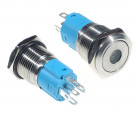 16mm; monostabil; 1NO1NC; Edelstahl; zum Löten; mit flachem Knopf; 12V LED-Hintergrundbeleuchtung; kraftblau; 3A; 250VAC; IP67; IK10; Lebensdauer: 40.000 Stunden