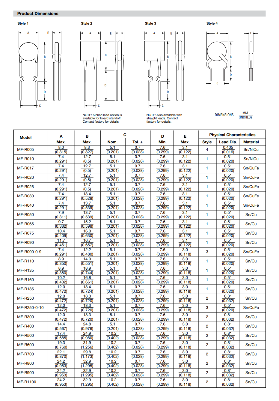 Bourns Hersteller-Teilenummer: MF-R090 Präzisionsgehäuse: Rys.MF-R-900 |