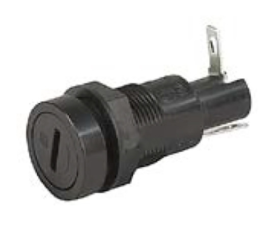 Sicherungshalter; 5x20mm; 10A; 250V; r=7,62mm; auf Holz; Schwarz; Abmessungen: 15x41,5mm
