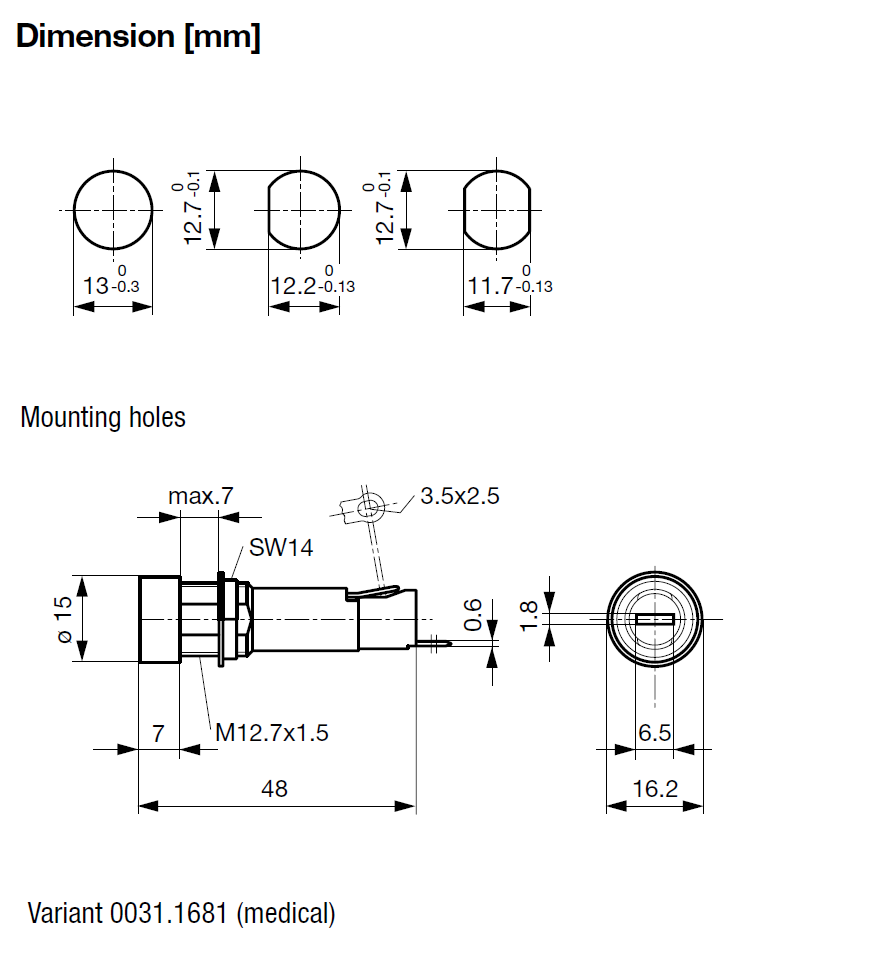 | SCHURTER | Steckdose | Auf dem Panel | 10A | 250V | Schwarz | 0 | 48x15mm | 5x20mm; 6.3x32mm | |||