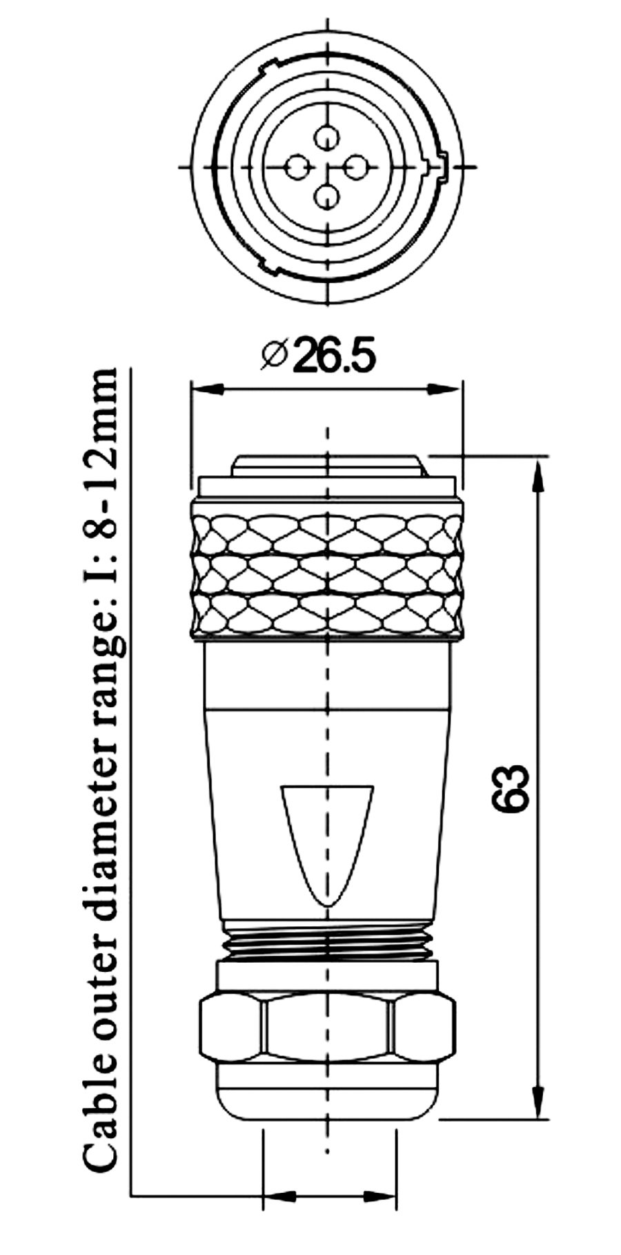 Stecker, rund, 4-polig, Kabeldurchmesser 8-12 mm geschraubt, für Kabelmontage, Innengewinde, IP67, 500V, 25A, mate SF2010