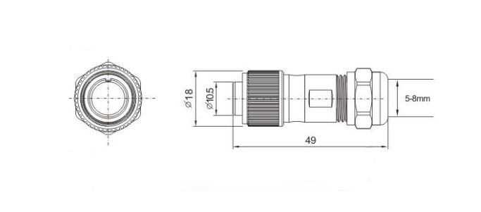 Buchsenstecker, rund, 6-polig geschraubt, für Kabelmontage, IS67, 125V, 5A, Innengewinde