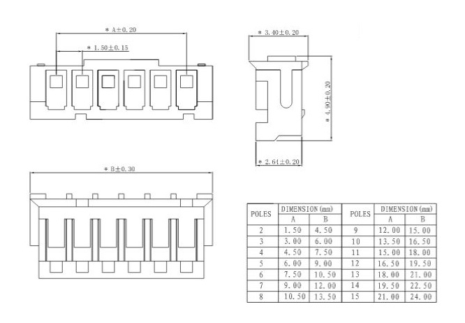 Nest; Herren; Vertikal; 3-polig; 100V; 1A; Raster: 1,5 mm; Betriebstemperatur: -25°C~+85°C; Material: PBT UL94V-0;