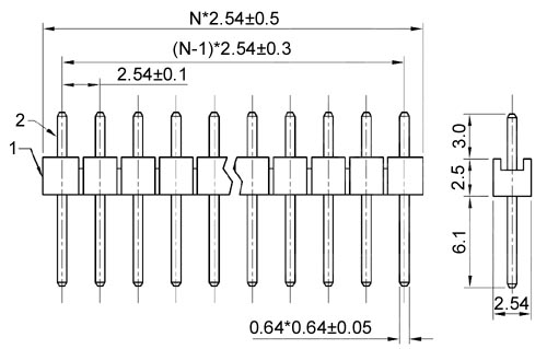 Stiftleiste | Zum Drucken | Stecker | 1x30 | 2,54mm | Gerade | ||||||||||||
