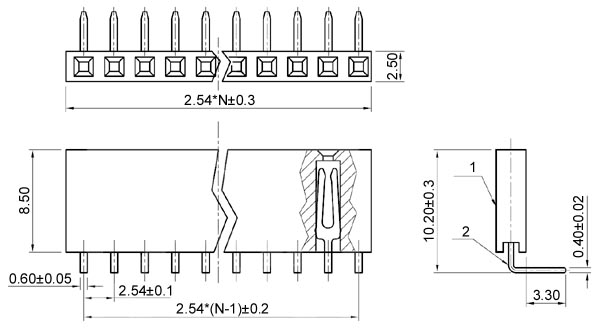 Stiftleiste | Zum Drucken | Stecker | 1x08 | 2,54mm | Gerade | ||||||||||||