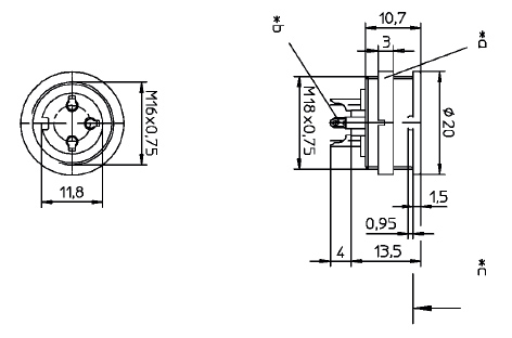 Wtyk, prosty, z gwintem i z długą osłoną, do lutowania przewodów IEC 60130-9, IP 40, 5A, 250VAC, śr. przew. 0.75mm, zakres temp.-40°C/+85°C