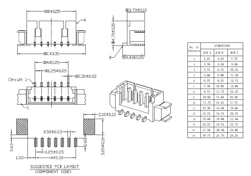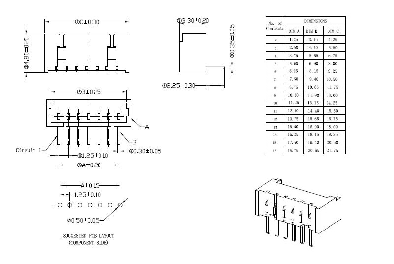 1.25mm Pitch, PCB Header, Single Row, Right-Angle, Surface Mount