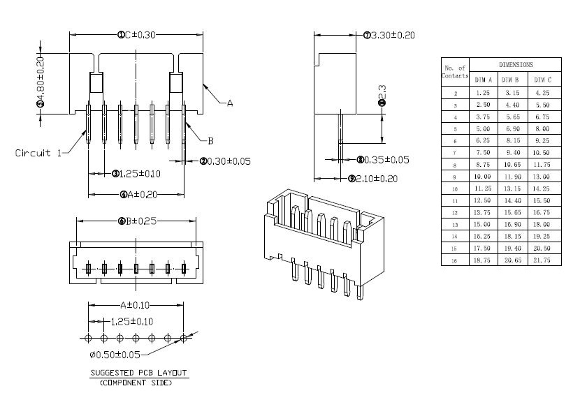 Nest; Herren; einfach; 8-polig; 125V; 1A; Raster: 1,25 mm; Betriebstemperatur: -25°C~+85°C; Betreff: MOLEX 53047-0810