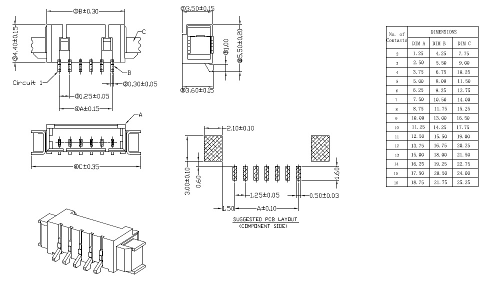 Nest; Herren; eckig; 3-polig; 125V; 1A; Raster: 1,25 mm; Betriebstemperatur: -25°C~+85°C; Betreff: MOLEX 53048-0310
