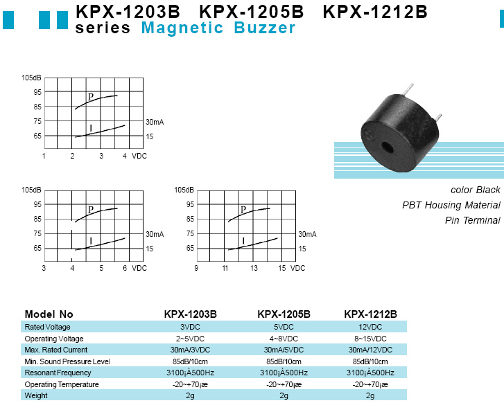 3100Hz | 5V | 85dB | 0,03A | í12x7.5mm | ||||||||||||