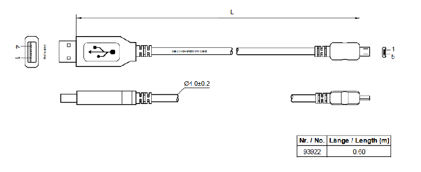 USB 2.0 Cable; USB A plug; USB B micro plug; 60cm; Black