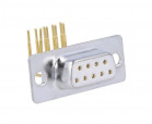 female; 9pin; for PCB; straight; through hole; w/o rivets and screws; metal housing; tinned, gold plated contacts, white insulator eqiv. DI09S, DF09PP