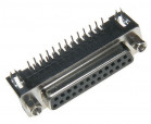 female; 25pin; for PCB, angled; standard; 9.4mm; w/o rivets and screws, w/o procection; copper alloy contacts, white insulator, eqiv. DH25F