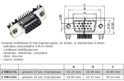 female; 15pin; for PCB, angled; standard; 9.4mm; w/o rivets and screws, w/o procection; copper alloy contacts, white insulator, eqiv. DH15F