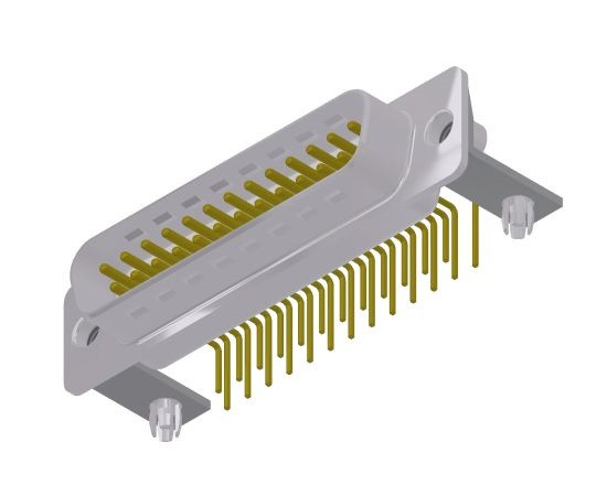 male D-Sub 25pin angled; 7.5A; through hole; w/o rivets and screws, metal housing copper alloy, white insulator