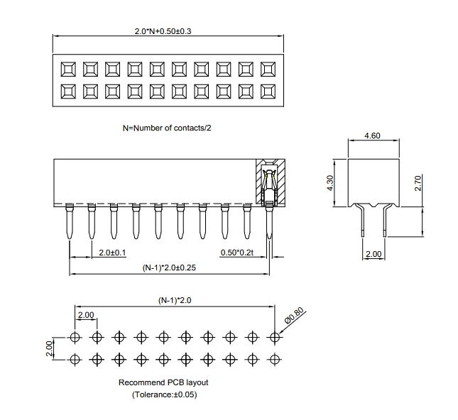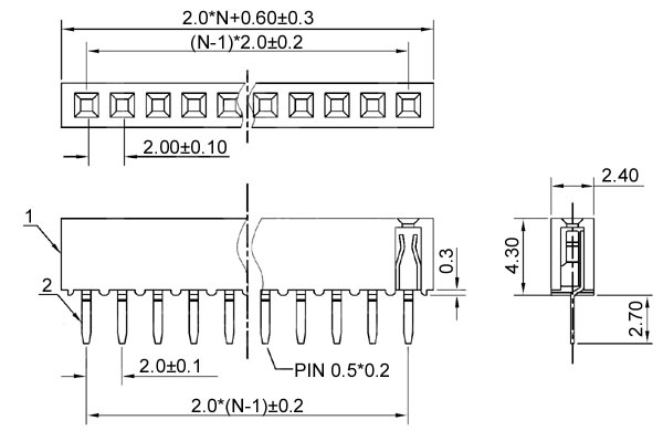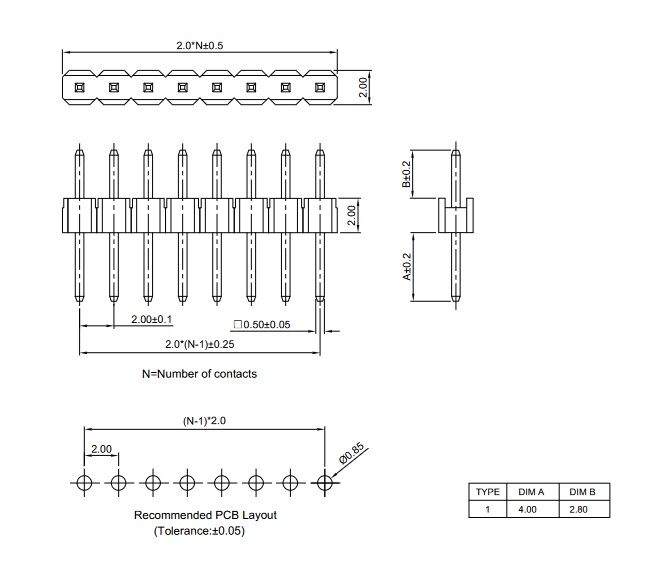 female; single row 1x40pin; staright; p.2,00mm, PCB, gold contact; equivalent: PBMS40S-LF,