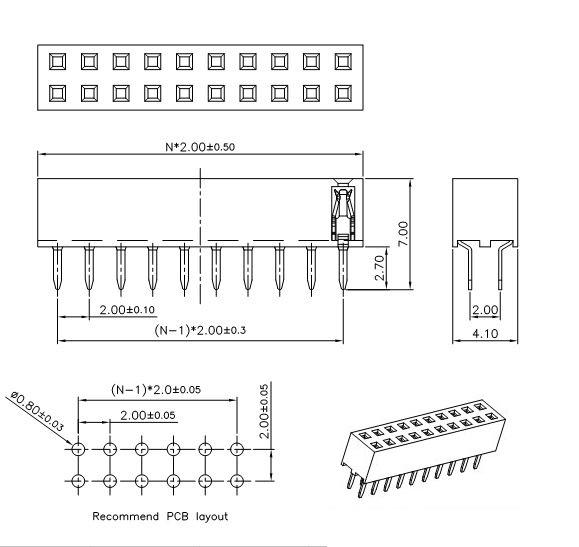 Socket pin strips | Female | For printing | 2x10 | 2,0mm | Straight | ||||||||||||