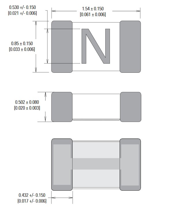 Surface Mount Fast-Acting Chip Fuse; mounting: SMD; case: 0603; current: 500mA; voltage: 63VDC; operating temperature: -55°C ~90°C