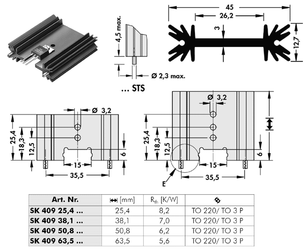 FK 224 SA 220 2 Fischer Heatsink Heatsink; FK 224; length=25mm; width=8,3mm; height=25,4mm; TO 220; 18K/W; black anodised