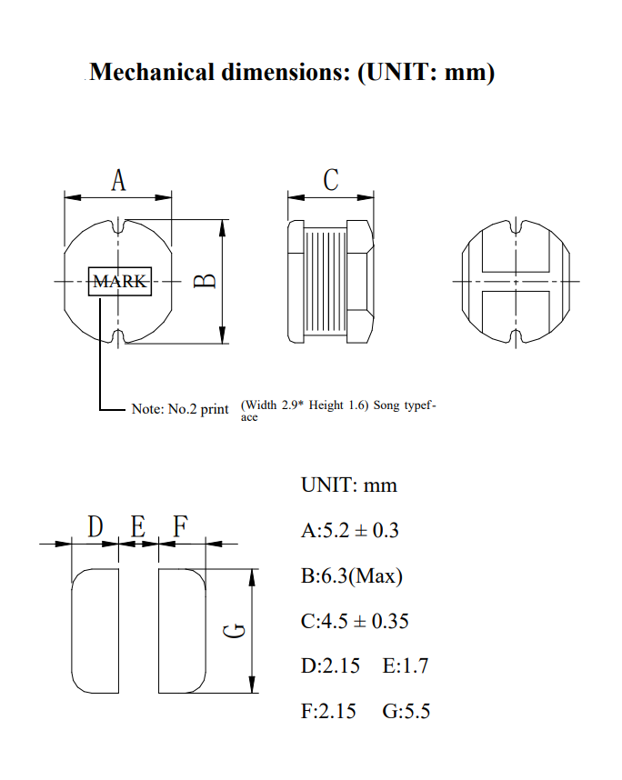 SMD power inductor; inductance: 120uH; current: 0.47A; resistance: 0.754R; dimensions: 5.2x6.3x4.5mm