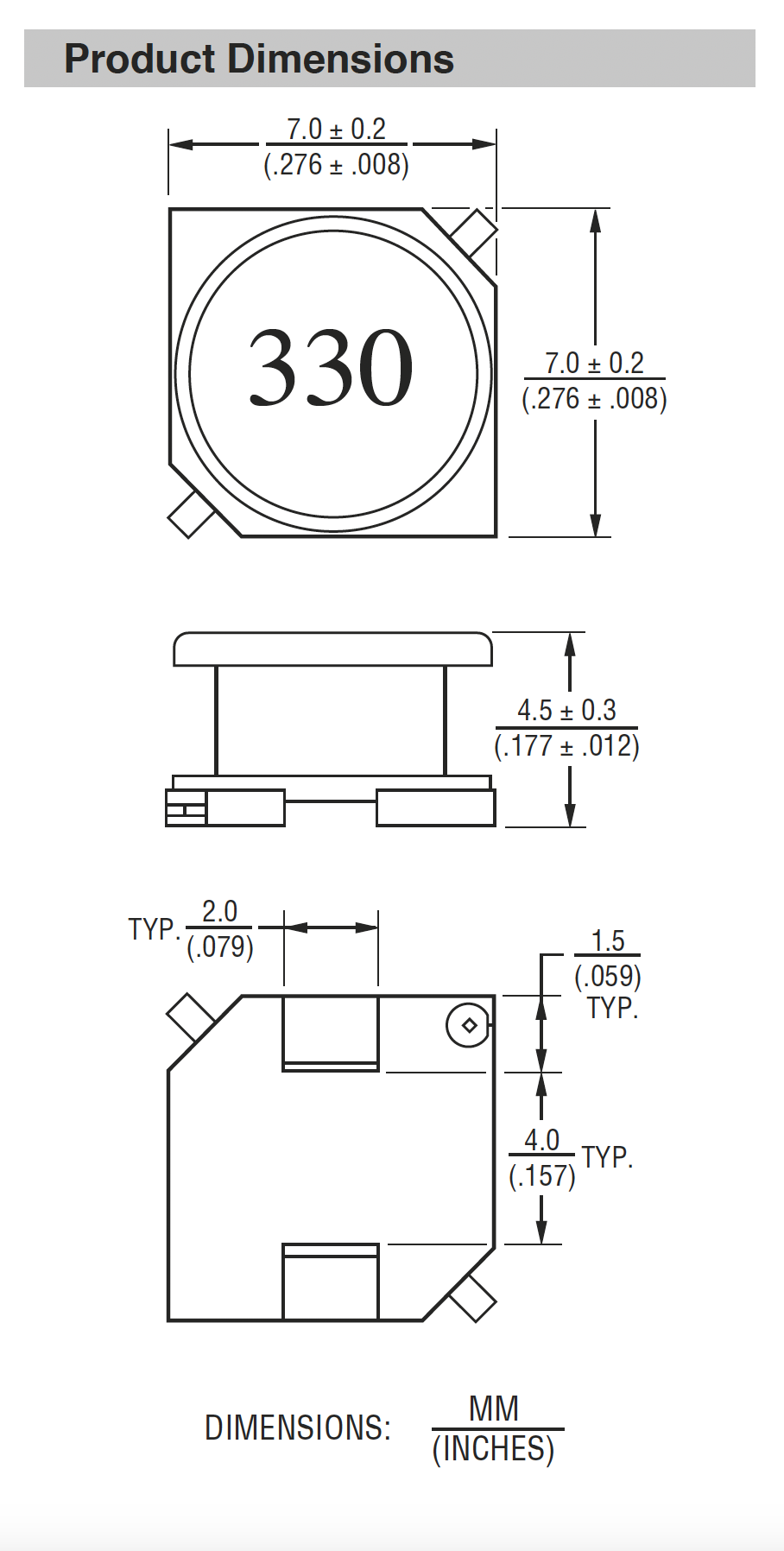 SMD power inductor; inductance: 0.56uH; 20%; current: 15.5A; resistance: 0.0047R; dimensions: 7.3x6.6x3mm