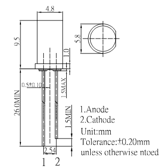 LED; THT; 1.8mm; orange; 210~350mcd; 605nm; 25mA; 60°; 1.5V~2.4V; -40~+80°C