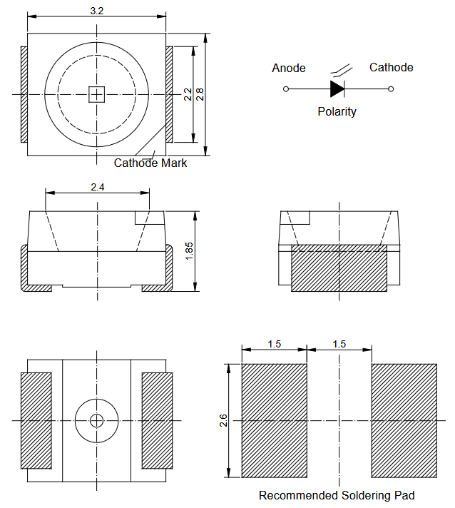 3528 (PLCC4) LED; IR (845 -850 nm); radiation intensity: 5 -8 mW/sr; viewing angle 120°; IF=20mA; VF=1.4 -1.6V;