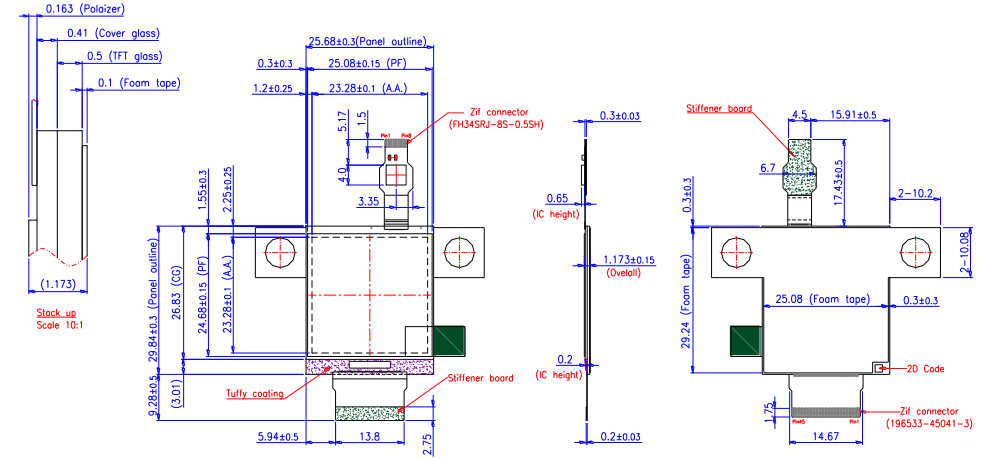 PI-TEK | 1,6inch | 320x320 | 32.08x36.48x0.7mm | 29.28x29.28mm | ||||||||||||