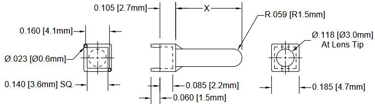 | 10mm | 10mm | White | -40°C ~ 85°C | PC clear UL94 | Straight light guide | |||||