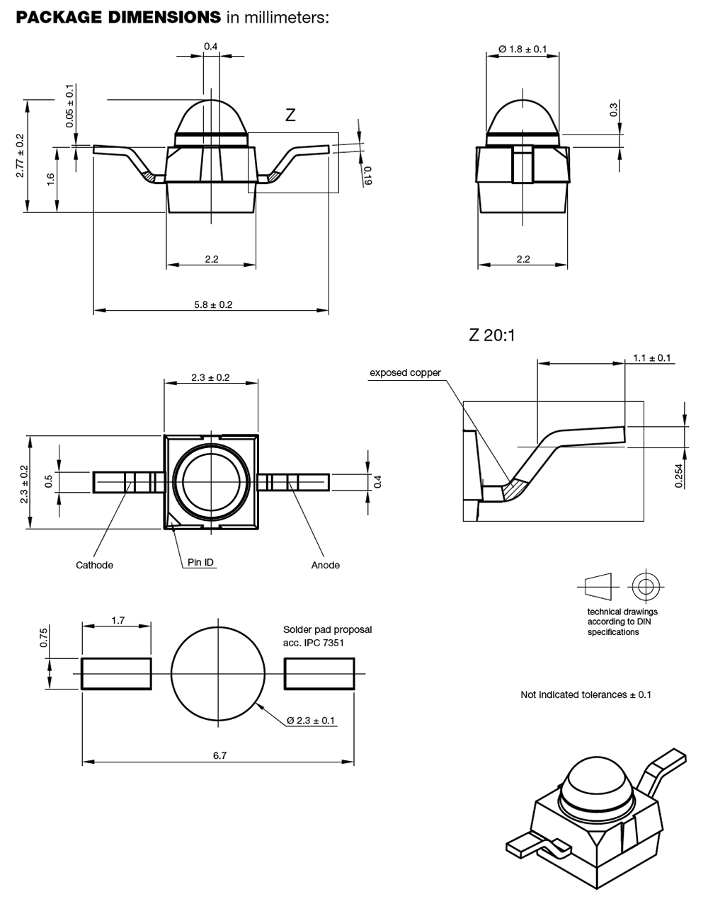 Photodiode PIN Chip 880nm 0.65A/W Sensitivity Automotive AEC-Q101 2-Pin DIL SMT BPW 34 FAS, BPW 34 FASR, BPW 34 FASR-Z, BPW34FAS-R33-Z
