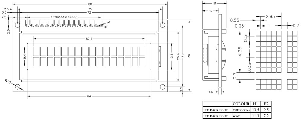 16x2 | Grey | Green-Yellow | 66.0x16.0mm | 80.0x36.0x15.0mm | |||||||||||||||||