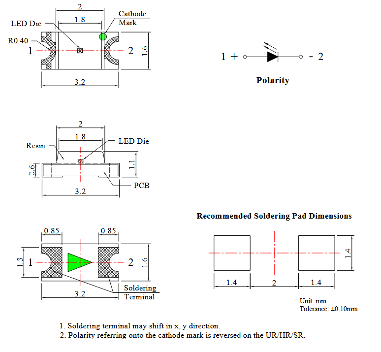| OSA | LED | SMD | 1206 | Red/Green | 4,2mcd | 40mA | 630nm | Diffusive | 65mW | 1,7V ~ 2,6V | |||||||||||||||||||||