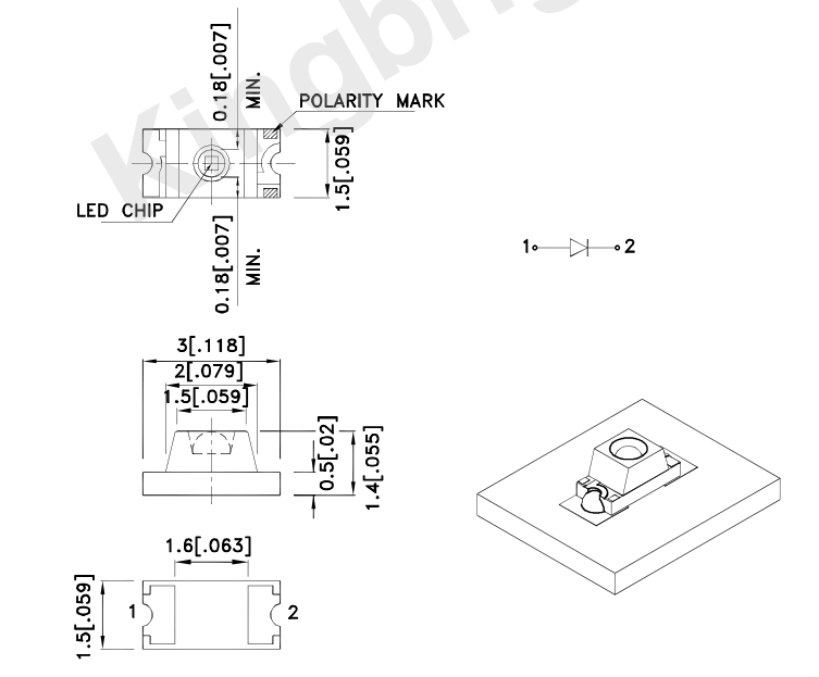 | KingBright | LED | SMD | 1206 | Orange | 120mcd ~ 250mcd | 120° | 20mA | 601nm | Transparent | 75mW | 2,1V ~ 2,5V | ||||||||||||||||||||