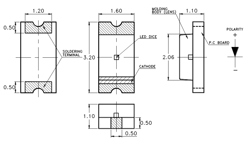 LED SMD 1206 white; dimensions: 3,2x1,6x1,1mm; luminosity: 700-1100mcd; diode current: 20mA Viewing angle: 120°; operating voltage: 2,6-3,6V