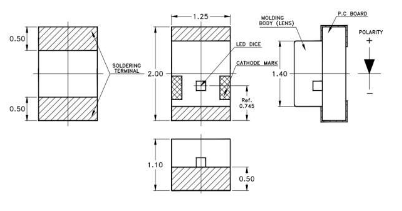 LED SMD 2808; luminosity: 280-710mcd; diode current: 30mA Wavelenght: 464-476nm; viewing angle: 120°; operating voltage: 2,4-3,2V