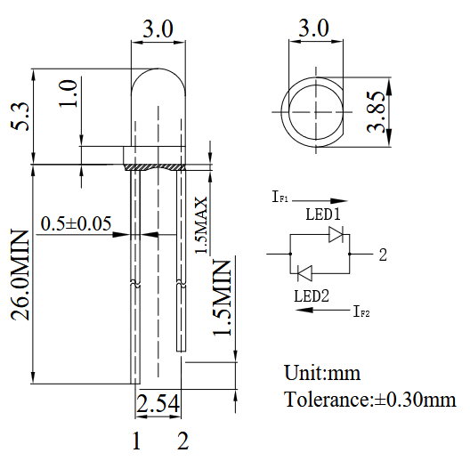 OPTOSUPPLY | Red/Blue | 5800~7000/2180~3000mcd | 20mA | 30° | 620~630nm/465~475nm | 3,0~4,5V | -30°C ~ 85°C | THT | 3mm | ||||||||||||||||
