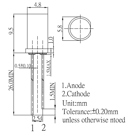 5mm, Super Bright Red LED THT Cylindrical With Flange Type Water clear; 20mA; 460mcd
