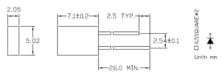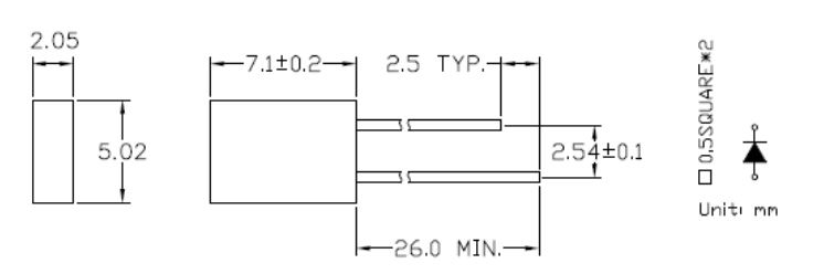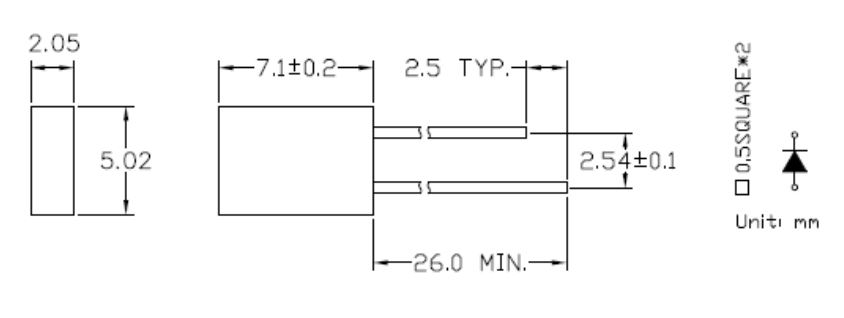 LED THT; 5x2mm; red; luminosity: 3,2-12,5mcd; viewing angle: 110°; diode current: 20mA Wavelenght: 625nm; diffused; terminal pitch: 2,54mm; working voltage: 2-2,5V