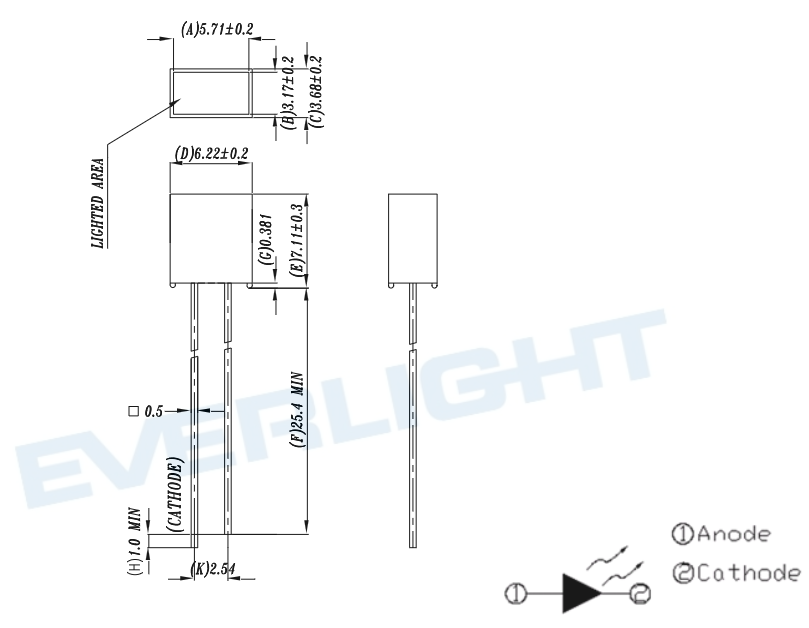 EVERLIGHT | LED | THT | Rectangular | Red | 50mcd | 110° | 25mA | 624nm | Diffusive | 2,54mm | ||||||||||||||||||||