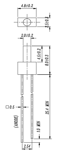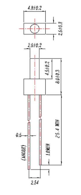 Case: THT; Colour: red; Brightness: 25mcd; Viewing angle: 130°; LED current: 25mA