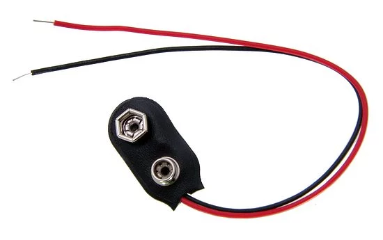 Connector for 6F22; 6LR61; black; with cables: 150mm; asymetric; number of batteries: 1; length: 24,5mm; width: 11,8mm; height: 7,3mm; equivalent:BAT6F22z; BS-IC; BS-IR