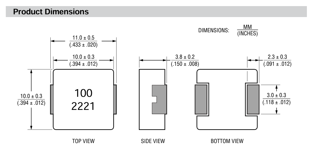 SMD power inductor; inductance: 22uH; 20%; current: 4A; resistance: 0.055R; dimensions: 10.3x10.5x4mm equivalent: SRP1038A-220M