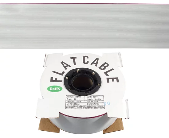 gray flat cable AWG28 (7x0.127mm) hq, 50 cores, gray colour with red 1st core pitch: 1,27mm, oper. tempitch: 105°C, mates with IDC type connectors - 2.54mm; cable length: 30,5m