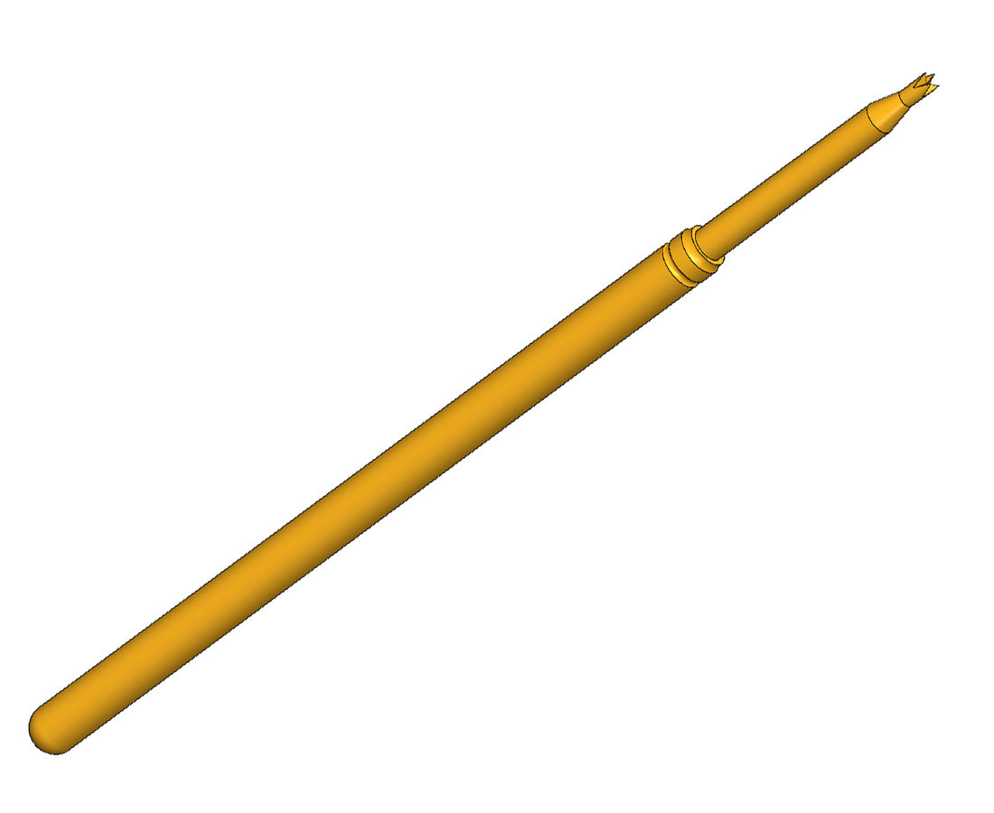 Test probe; max. spring compression: 6,35mm; spring compression force: 2N; current rating; 5A; length: 33,4mm Contact material: steel; contact plating: gold-plated; max. contact resistance 20mOhm; blade tip shape: 4-piont, corona; tip diameter: 0,5mm; mounting: push-in
