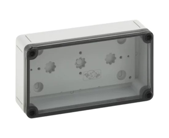 Empty enclosure; Base: Polystyrene; Cover: Polycarbonate; Transparent; Grey; 94x180x57mm;