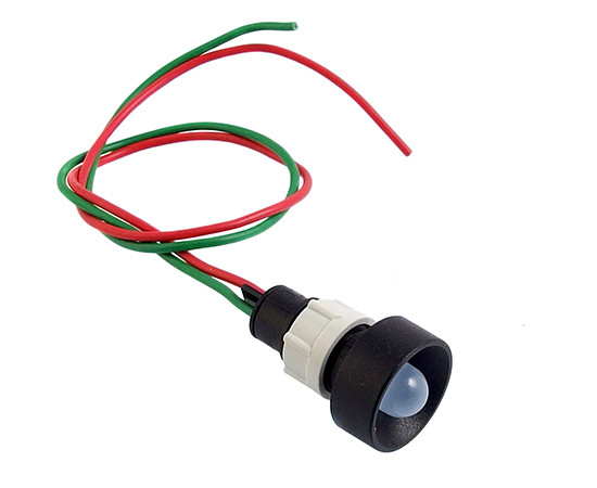 LED blue; concave; average hole. mounting: 13mm; 24VAC / DC temp. Working: -40 ~ +70; body: black; wires 300mm; IP44