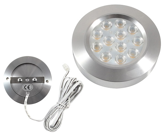 Eyelet LED Silver, 3.0W, cold white, 300lm, 30°, 12VDC, Dimention: d70x15 12xSMD2835, Housing: Silver PC, Cable: 2m